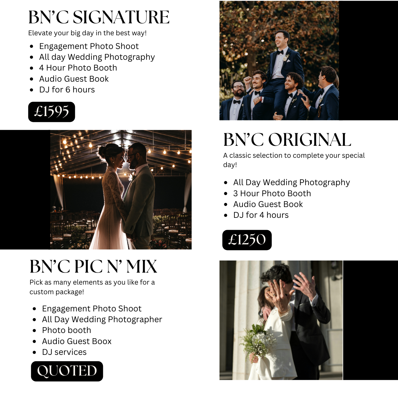Choose from our experienced photographers to capture the memories in the perfect way! Not only that, why not add a photo booth for everyone to be the star of the photo!